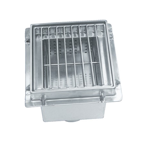 Floor drains, waste water outlet DIN 100 downwards or DN100 sideways. Measures 250x250x318 mm. Drivable with hand pallet truck.