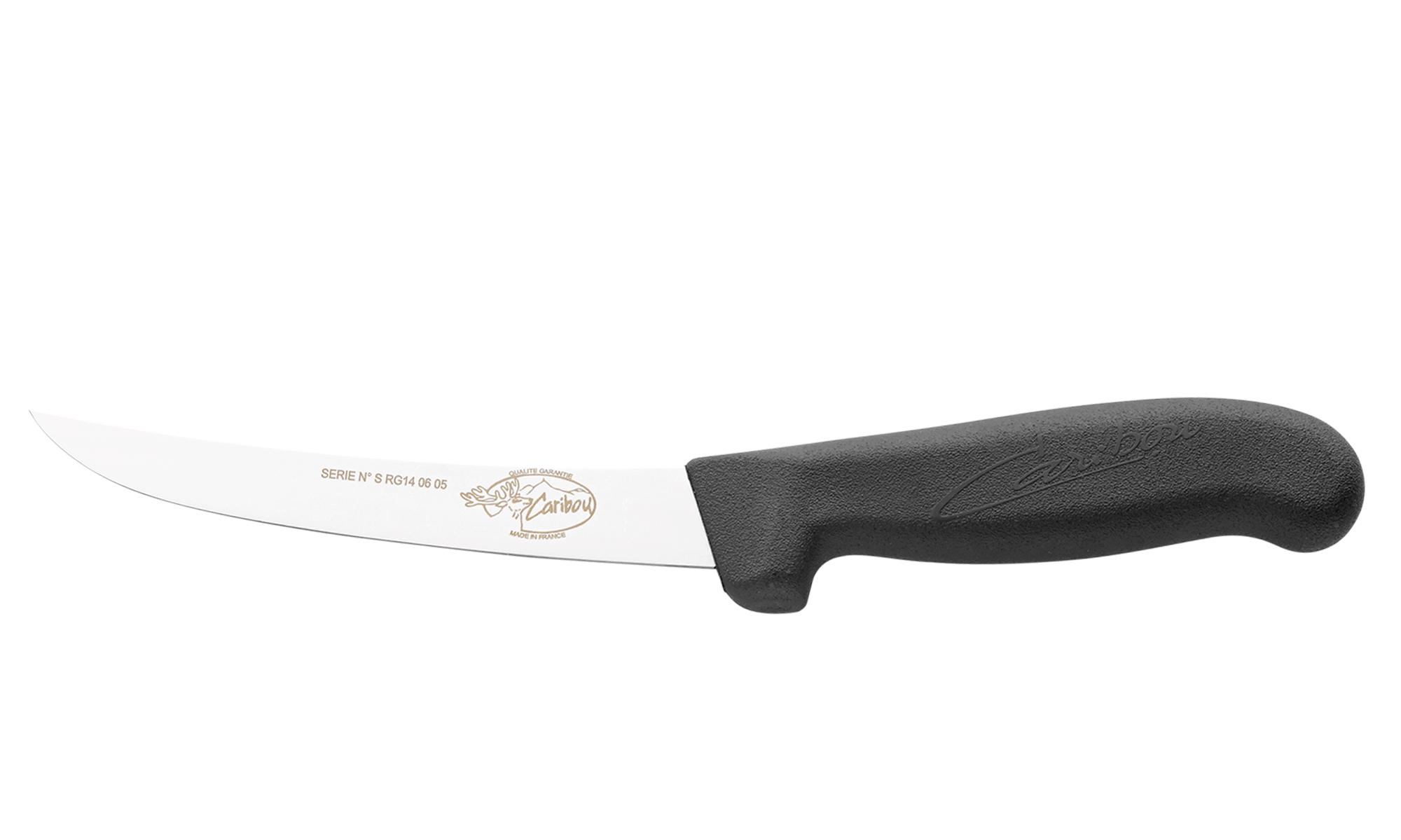 Caribou konditustamise nuga, kõver, lai, jäik tera 15 cm. Kood 0051015