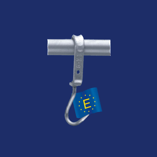 Libisev konks 1,5″ torule, konksu osa ø16 mm roostevabast terasest, libisev osa 35×12 mm tsingitud, kandevõime 250 kg, kaal 1,35 kg, konksu üldpikkus 307 mm, vastab EU DIN 5047 . Kood 100353-1